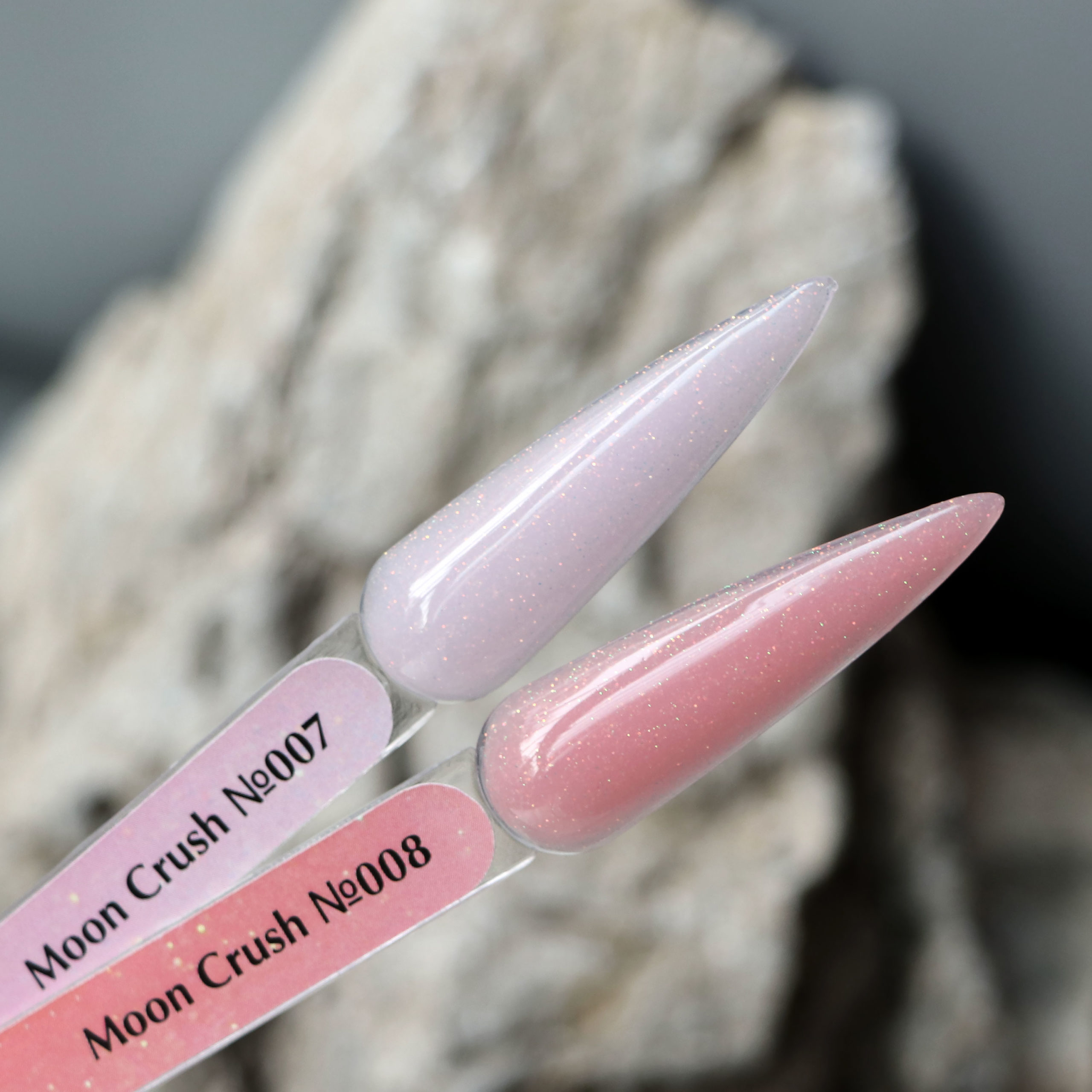 - 2 new shades are added to the already beloved palette, expanding the collection and opening up even more possibilities for a sophisticated, radiant manicure. With their help, it will be possible to make the perfect manicure that will look especially magnetic.The Moon Crush collection includes gel polishes with small glitters. They are easy to apply to your nails. They do not spread, they lie flat on the nail plate, and therefore the result will be flawless.