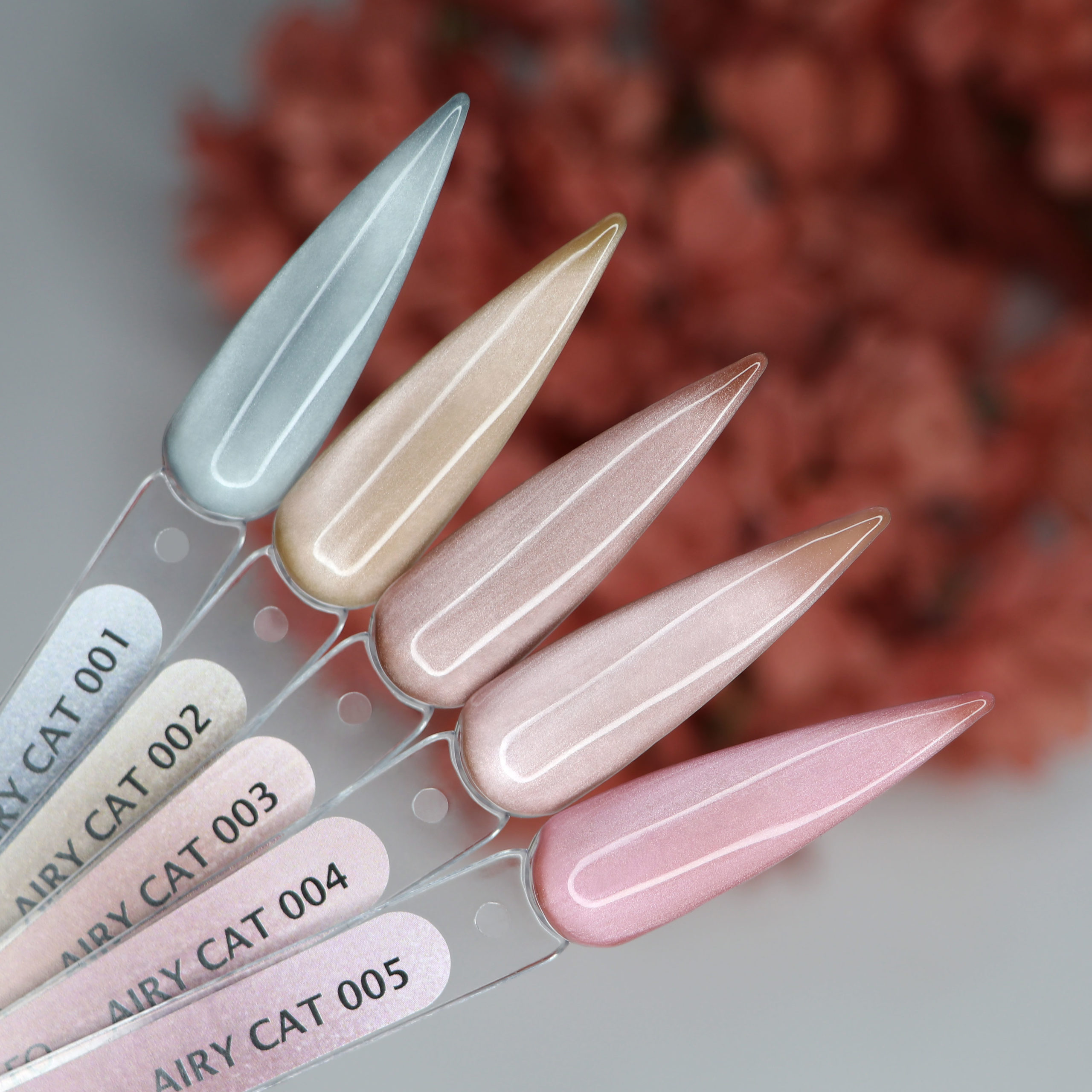 - The new Komilfo Airy Cat’s eye is just an incredible combination of shades in one gel polish. All kinds of overflows, stunning shades, and the minimum grinding of magnetic particles with their maximum amount.