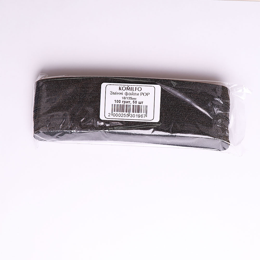 - Profitable purchase of Komilfo replacement files for manicure – POP 100 grit, 18/135 mm, 50 pcs is available from our authorized representatives. Each of the stores we cooperate with has full access to the brand’s products, prompt customer support and fast delivery across Ukraine. Promotions, discounts and loyalty programs for all representatives.