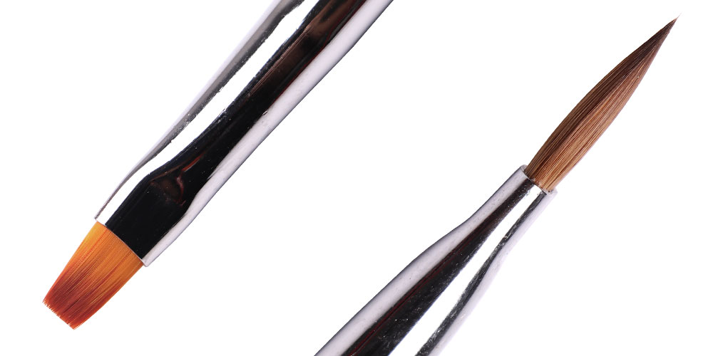 Komilfo Double Acrylic 4 (Kolinsky) / Gel flat 4 (Nylon) brush is a natural kolinsky brush for acrylic design and modeling on one side and nylon on the other.