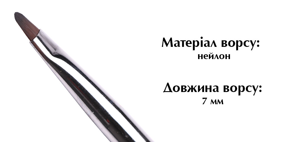 • Овальна форма пензля дуже зручна, дозволяє набирати та викладати потрібну кількість матеріалу на ніготь, а також наносити його тонким шаром.