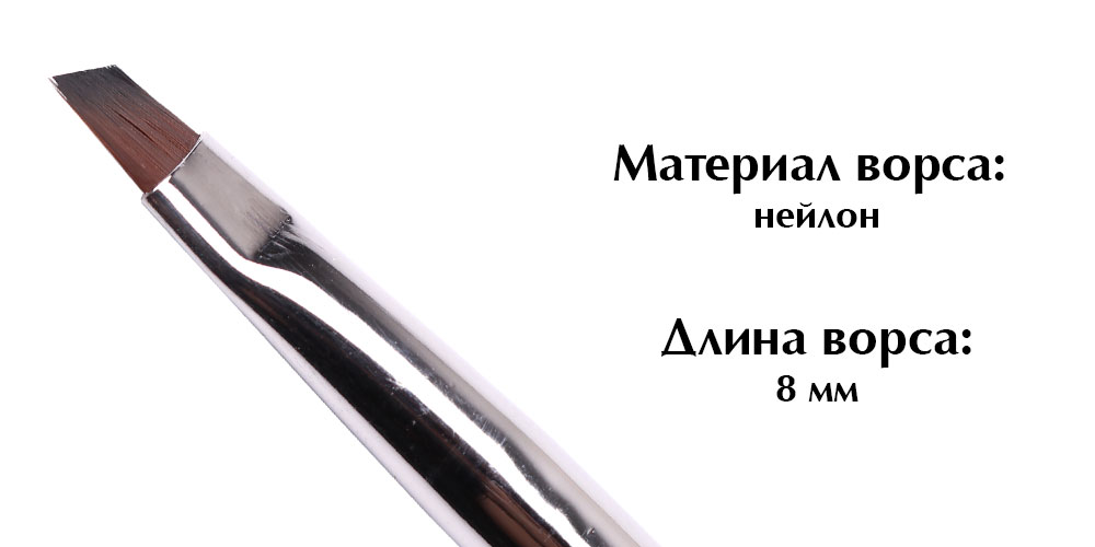 - Удобная скошенная форма позволяет набирать и выкладывать нужное количество материала на ноготь, а также наносить его тонким слоем.