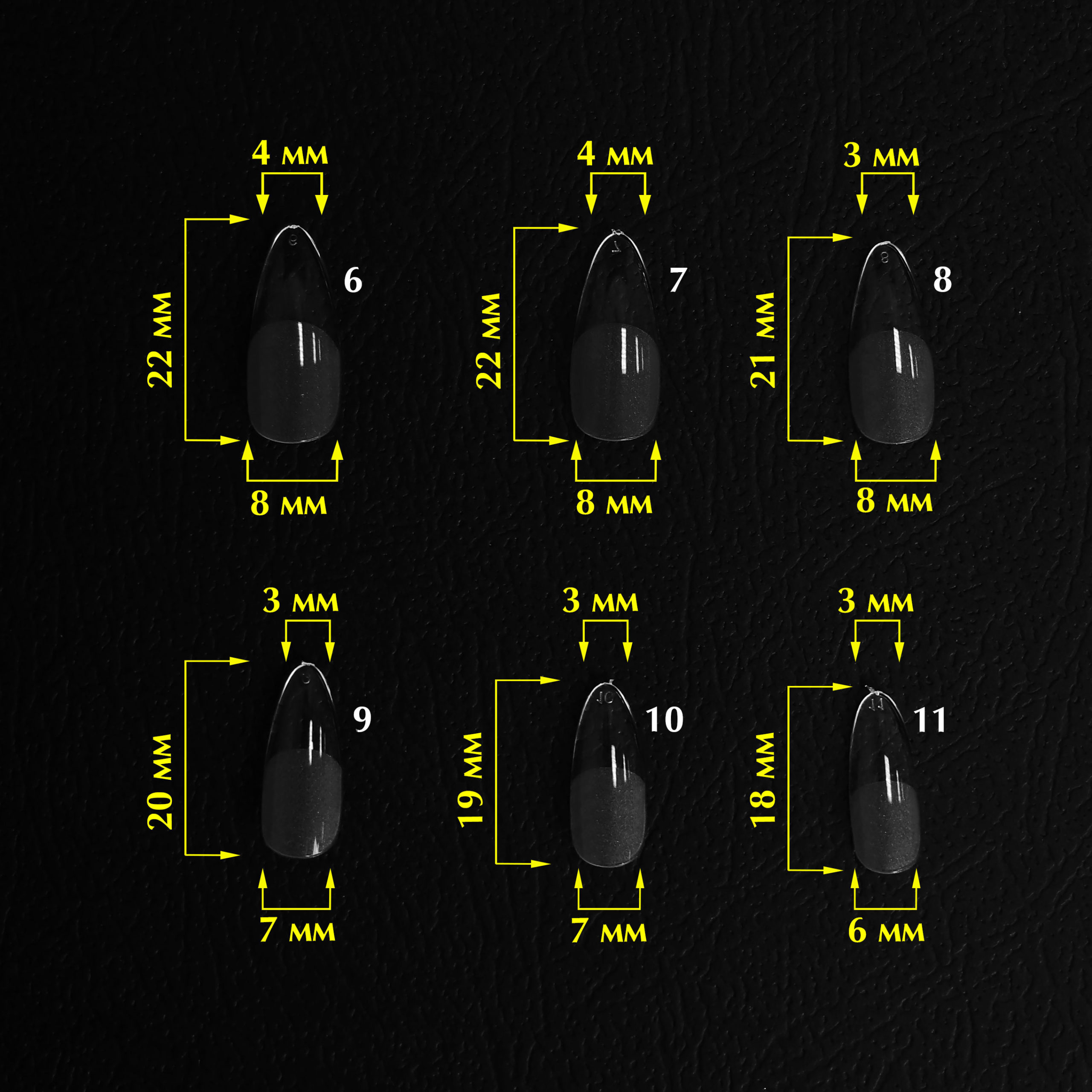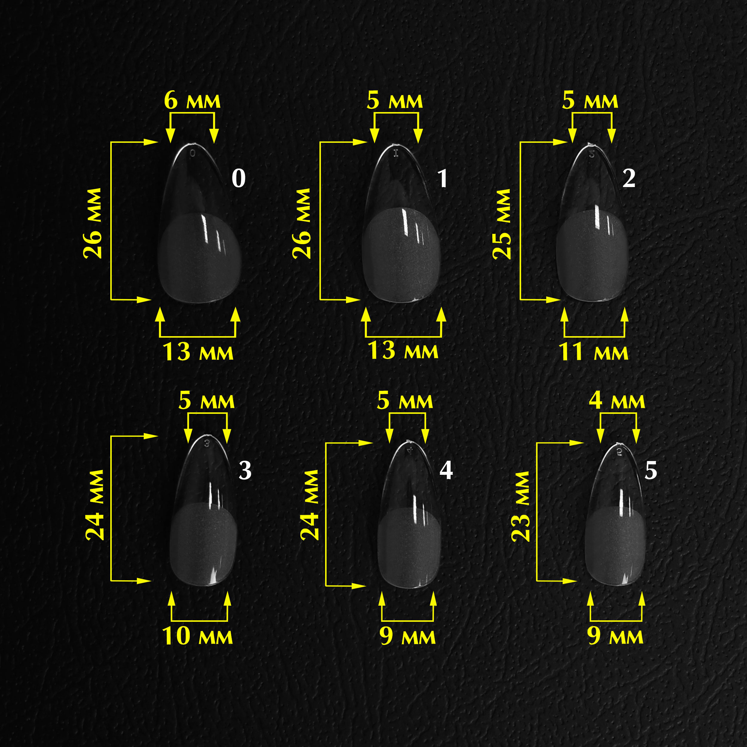 Материал форм для ногтей – PP (полипропилен), материал кончиков ногтей – PMMA (полиметилметакрилат).
