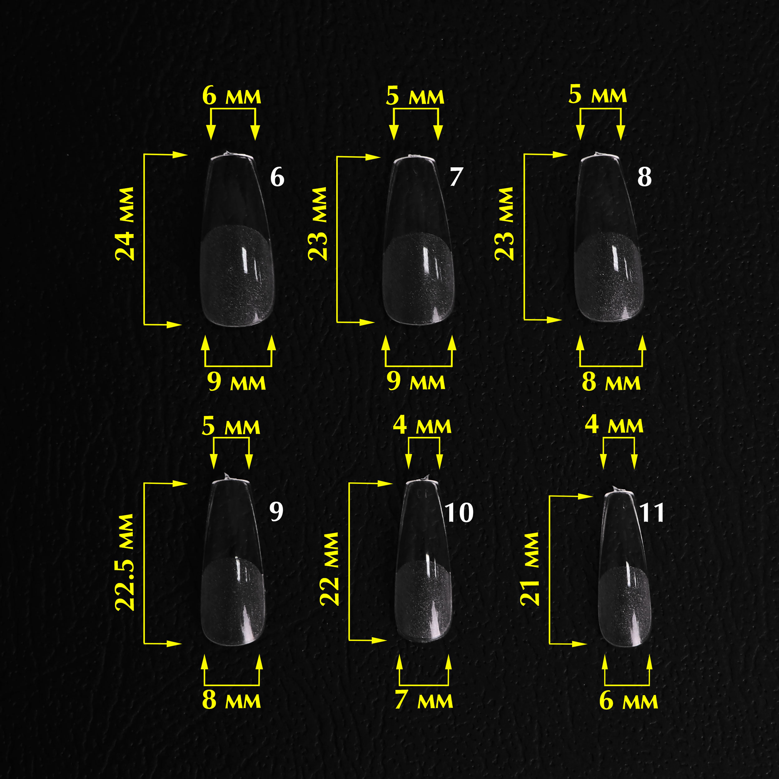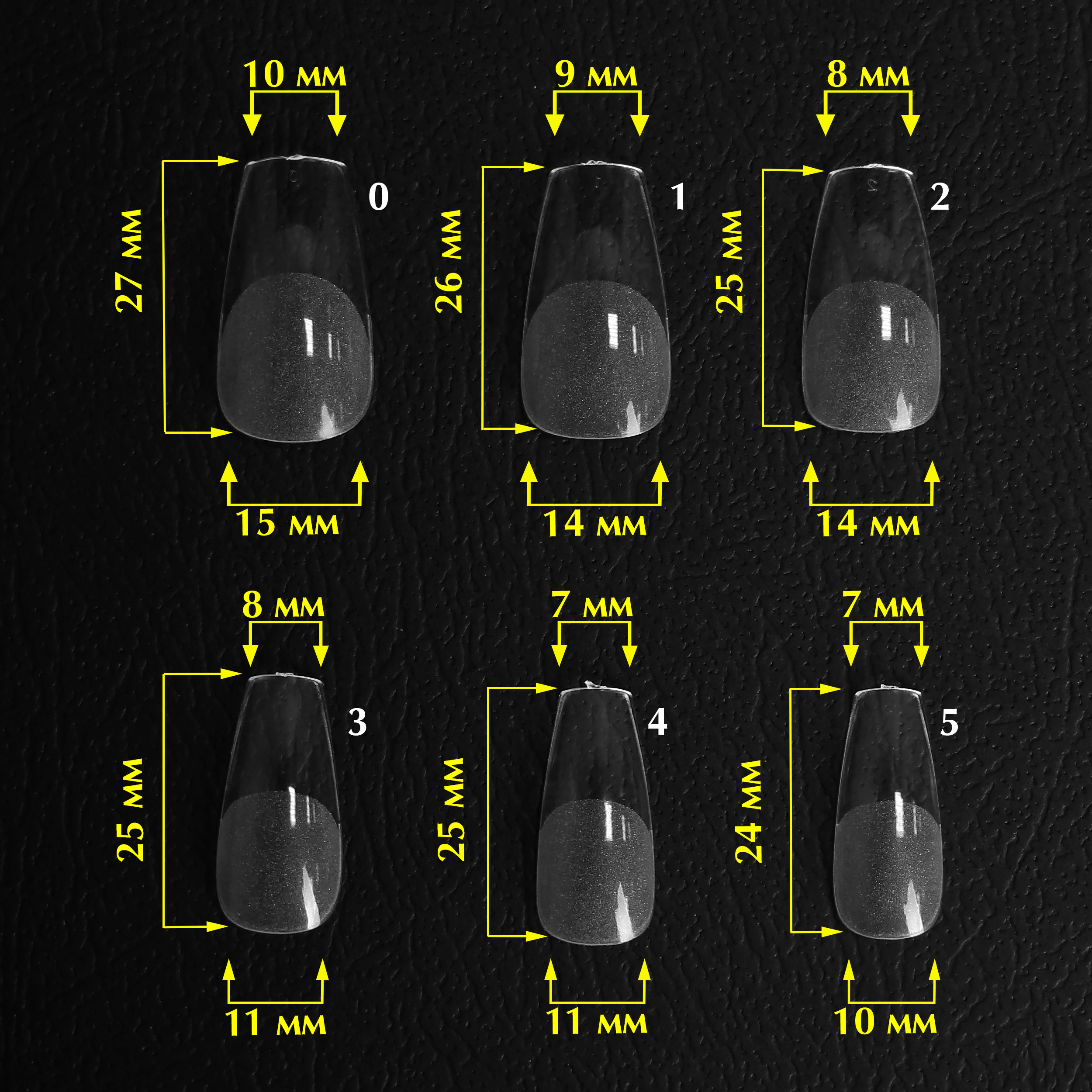 Материал форм для ногтей – PP (полипропилен), материал кончиков ногтей – PMMA (полиметилметакрилат).